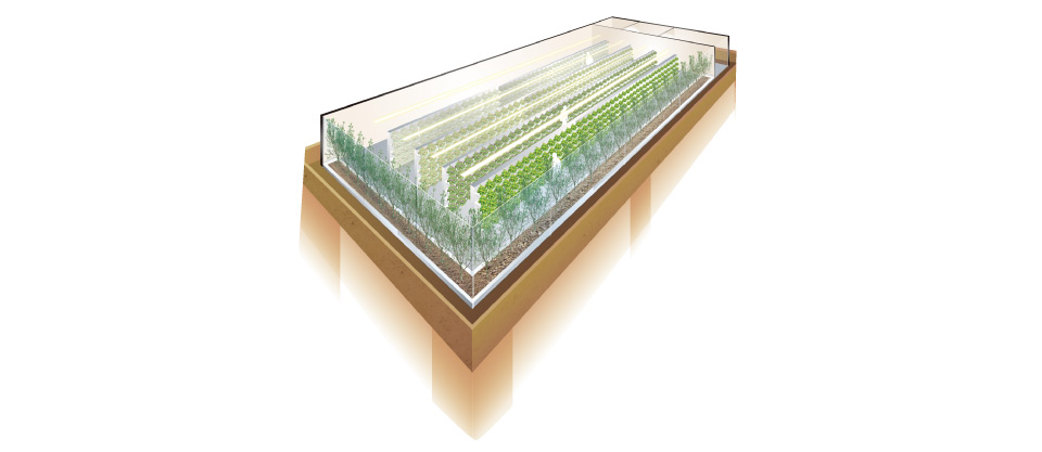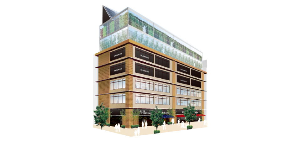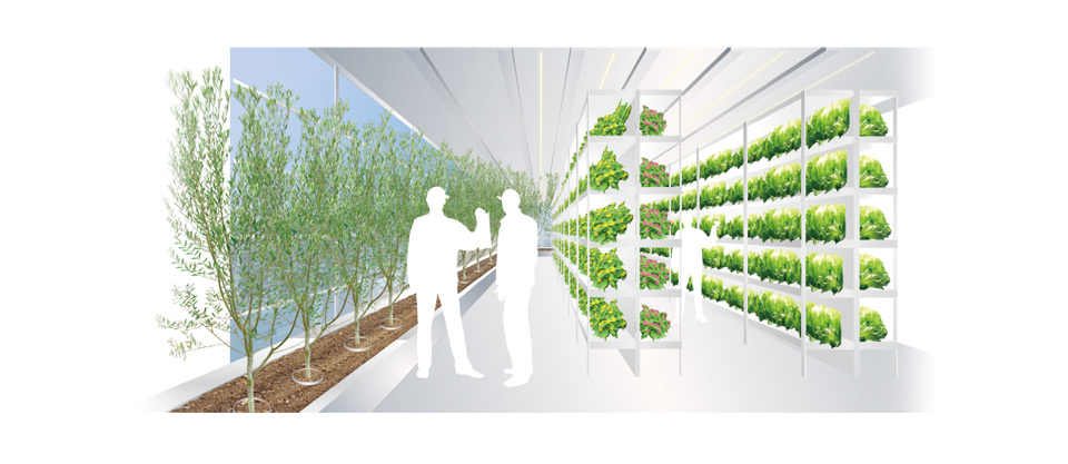 下層フロアのレストランやカフェ、そして近隣都市部の大量消費エリアに対し、高付加価値の農産物を、仕入れ・流通コストを大幅に抑えながら供給する事が可能になり、高い収益性が見込まれます。また、地域行政との連携を図り、災害時の避難拠点とすることも視野に含んでいます。